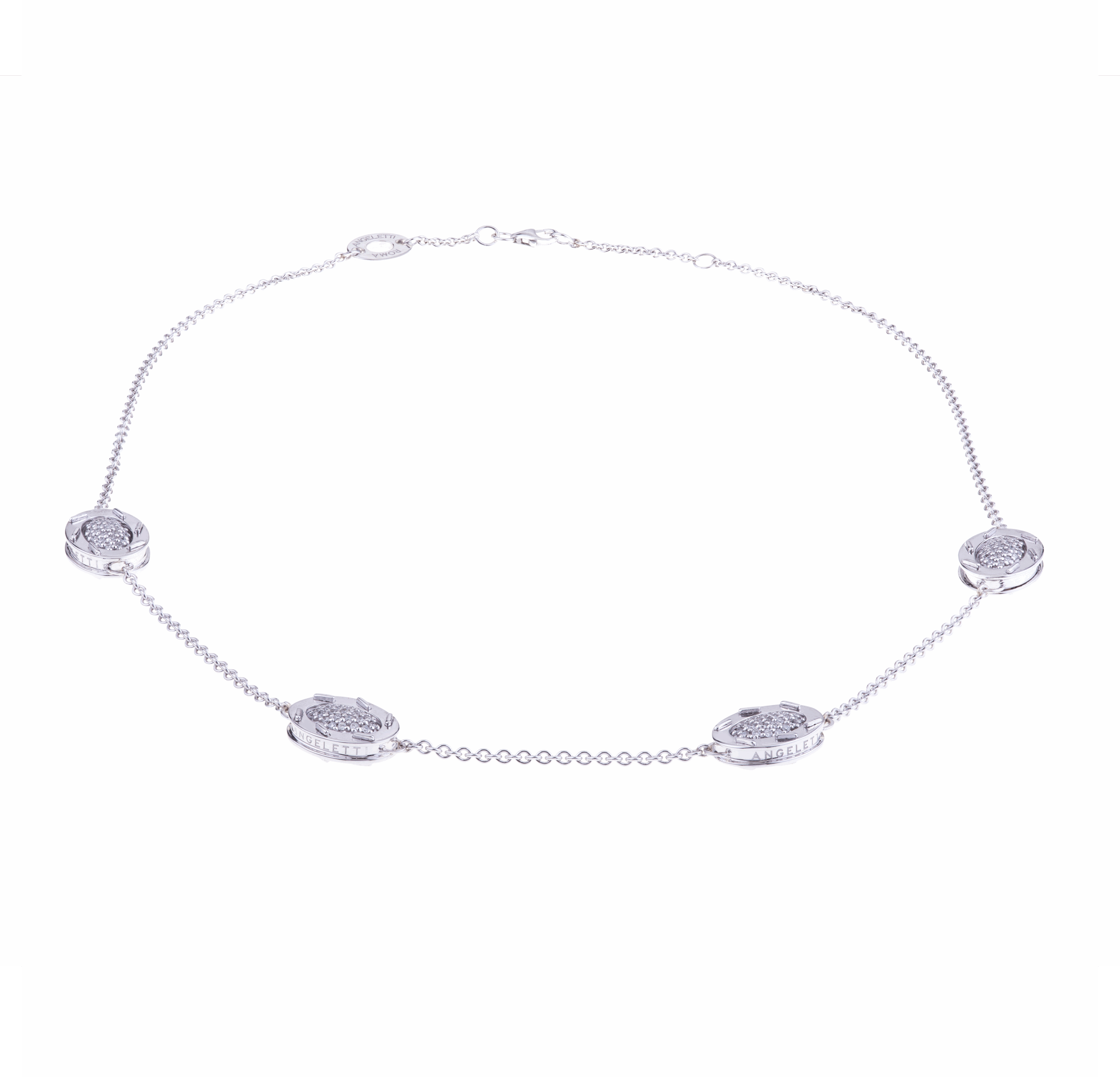 Omles Mini choker in 18 kt white gold, 17.34 g, with 0.85 ct diamonds. 4 Omles pendants.